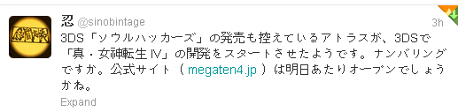 Игра разрабатывается для 3DS, официальный сайт оживёт завтра - http://megaten4.jp/